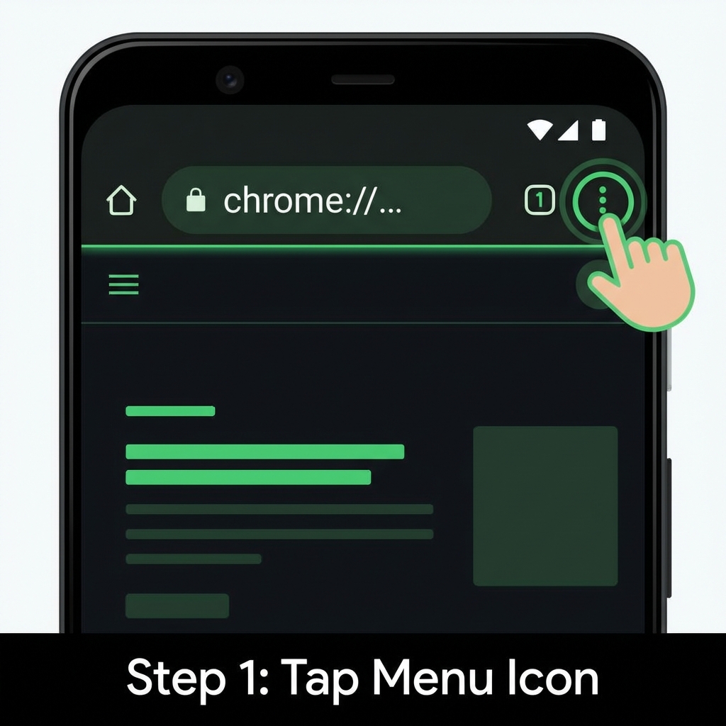 Open Chrome browser, tap the vertical three dots icon at the top right.