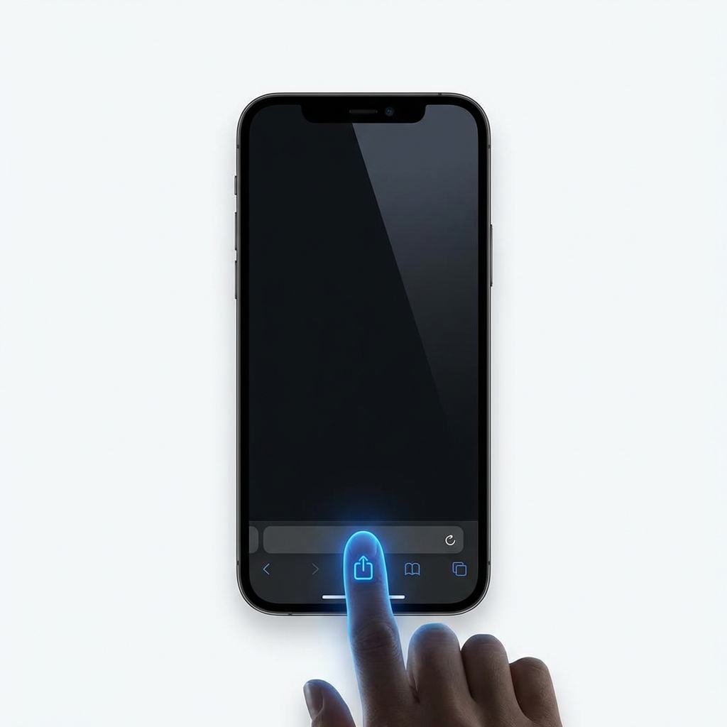 Open Safari browser, find the square icon with an upward arrow at the bottom toolbar.